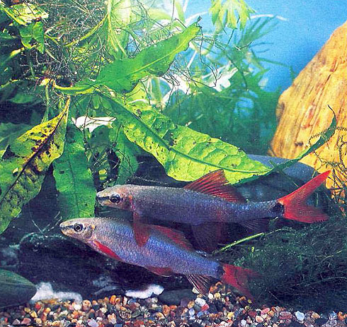 Молодь лабео двухцветного (Labeo tricolor). Видны возрастные изменения в окраске