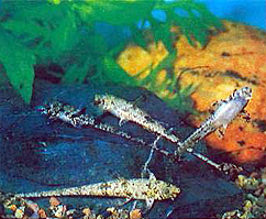 Перистоусые сомы (Mochocidae), обитающие на большей части африканского материка, имеют два усика на верхней и четыре на нижней челюстях, которые, как следует из названия, могут иметь перистые выросты. Многих представителей рода Synodontis называют сомами-перевертышами за способность плавать вверх брюшком у поверхности воды, под корягами или листьями водных растений. К сожалению, размножение этих сомов недостаточно изучено и не носит регулярного характера. Как и в описанных ранее случаях, здесь выручает метод гонадотропных инъекций, что лишний раз подтверждает его перспективность в любительском домашнем рыбоводстве.