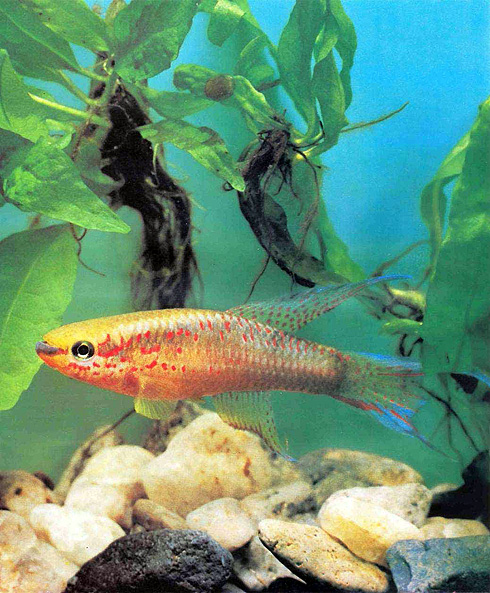 Но не только в пересыхающих лужах обитают карпозубые – есть среди них виды речные, озерные, в том числе интереснейшая и довольно крупная рыбка (до 14 см), обитающая в кристально чистой воде озера Танганьика; прозрачность его достигает 30 метров и более! Ламприхты, проявившиеся у нас в середине 80-х годов, очень нежны и чувствительны к качеству воды и кормов, поэтому для их содержания нужен достаточный опыт. Интересно, что эти рыбы откладывают свою икру в щели между камнями.
