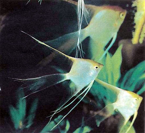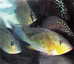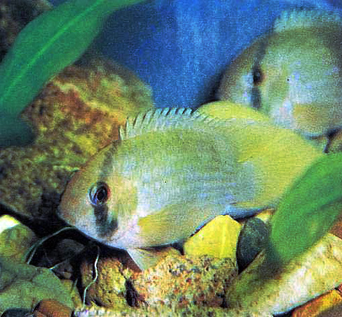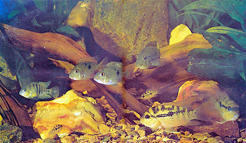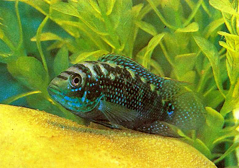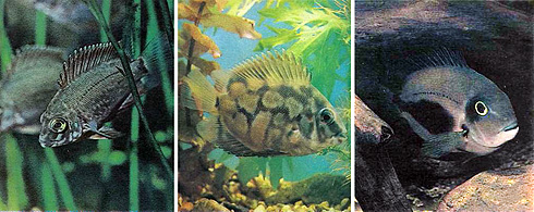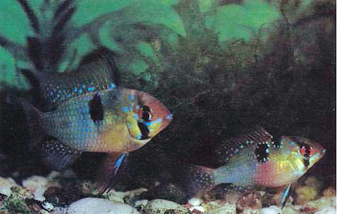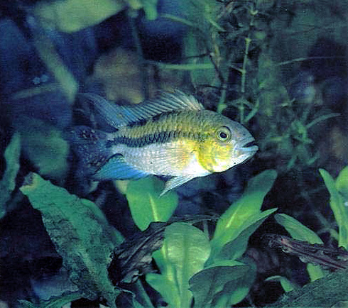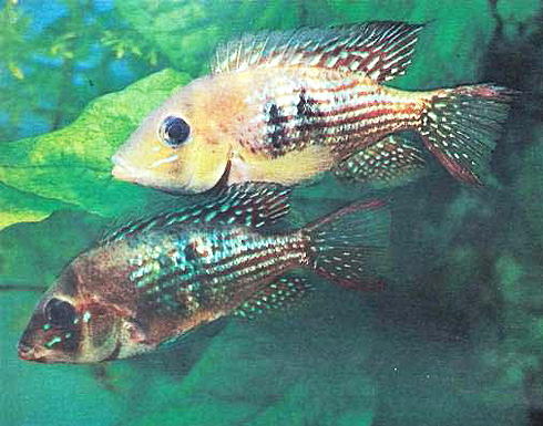 К первой группе, предпочитающей, как правило, мягкую воду со слабокислой реакцией (рН 6,0–6,8) и относительно высокую температуру (25–30°С), можно отнести акарихтов, большинство апистограмм, астронотусов, южноамериканских цихлазом, креникар, креницихл, многих геофагусов, дискусов, уару, а также скалярий, хотя последние хорошо адаптированы в аквариумах и стали уже не так прихотливы.