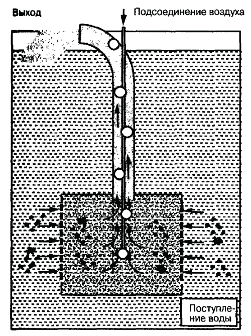Во внутреннем фильтре, использующем воздух, воздушные пузырьки транспортируют воду по подъемной трубке