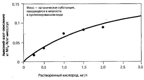 Содержание кислорода. В биологических основах мы видели, что необходимо более 3 г кислорода, чтобы окислить 1 г аммиака в нитрат. Нитрификация может происходить только в строго аэробной среде. Это должно гарантироваться конструкцией биофильтра, или скорость втекающей воды должна обеспечивать достаточное снабжение кислородом, иначе в среде фильтра будут создаваться анаэробные условия. К этому нужно добавить, что заселяют фильтр не только нитрифицирующие бактерии, а существует еще большое количество других конкурирующих бактерий. Если содержание кислорода повышается, то нитрификаторы получают возможность начать деятельность раньше, чем их конкуренты. Для биофильтра очень важно то, что нитрификаторы живут не только в прожиточном минимуме, а могут активизировать свой обмен веществ. В исследованиях, проведенных в США, показано, что при содержании кислорода от 2 мг/л происходило только 40% от максимально возможной нитрификации, в то время как при 4 мг/л достигалось 86%.