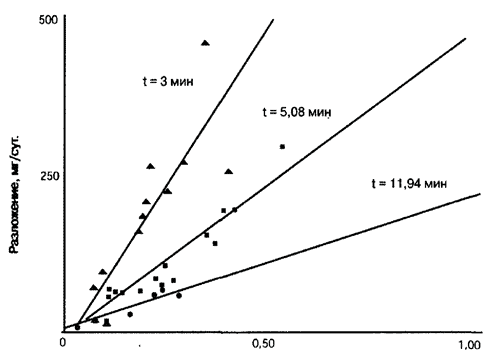 Объем биофильтра. На графике (с. 92) нормы разложения аммония представлены в соответствии большими биофильтрами, которые промеряны так, что время выдержки воды составляло от 3 до 12 минут.
