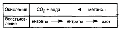 Восстановление нитратов до газообразного азота предполагает наличие источника углерода, который одновременно подвергается окислению