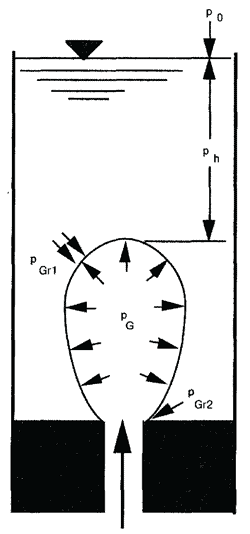 Гидростатическое давление рассматривается здесь в связи с тем, что оно должно преодолеваться при образовании пузырей компрессором.