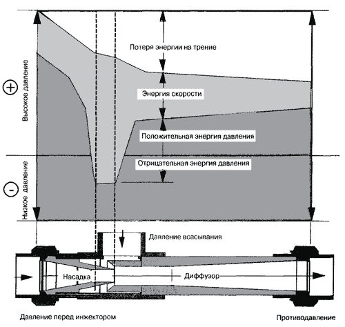 Продольный разрез инжектора с энергетической диаграммой