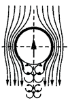 Поднимающийся пузырек в текущей вниз воде. Турбулентное течение. Насыщенная кислородом пленка быстро уносится. Хорошее обогащение кислородом Завихрения |