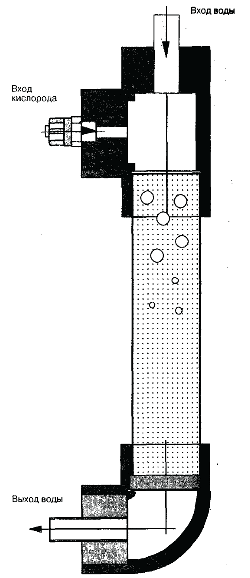 В кислородном реакторе используется принцип противотока и повышенное давление для лучшего насыщения кислородом |