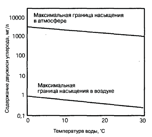 В атмосфере граница насыщения воды двуокисью углерода выше, чем в обычном воздухе