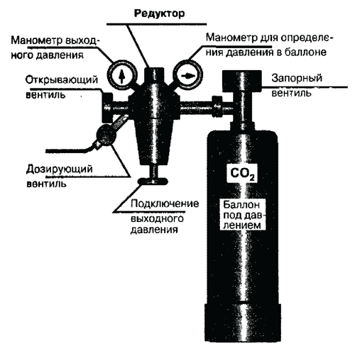 Из баллона с газом под давлением никогда нельзя отбирать двуокись углерода без предварительного устройства, снижающего давление