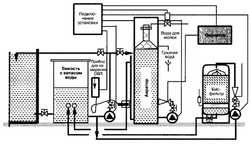 Схема на стр. 146 поясняет, как с помощью техники мы вмешиваемся в цикл азота. При этом ясно, что пенообразователь в этом закрытом цикле «открывает окно». Загрязнения и токсичные вещества удаляются из этого закрытого цикла и переносятся в емкость для пены, которая больше не соприкасается с циклом воды. И, как это становится ясно из приведенного изображения, это основное отличие от механического фильтра.