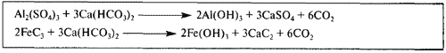 С помощью воды в резервуаре поднимается уровень, и соответствующее количество известковой воды и переходит в аквариум. Таким образом исключается попадание извести в дозирующие слои. С другой стороны, известковая вода постоянно разбавляется поступающей водой, так что гидроксид кальция должен дозироваться. Применение дозирующего насоса гарантирует, что в этой системе подача известковой воды происходит постоянно. При дозировании известковой воды в качестве побочного эффекта нужно учитывать, что она применяется как в очистке сточных вод, так и в качестве флоакулянта. Это же происходит и в аквариуме. Известно выпадение фосфата кальция, причем образуется гидроксилапатит (Ca5PO4OH), который осаждается на фильтре или удаляется с помощью флотатора. Ионы аммония и железа реагируют согласно расположенным внизу уравнениям с образованием хлопьев гидроксида алюминия. Тему не стоит углублять далее. Если есть сомнения в том, что флотатор не сможет удалить очень малые количества микроэлементов, напомним о седиментирующем действии гидроксидов.