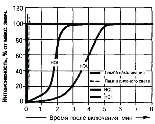 HQI-лампа включается гораздо быстрее, чем HQL-лампа