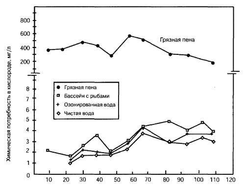 Значение химической потребности в кислороде в аэраторе в сто раз выше, чем в других частях установки. Можно догадываться о том, какое количество органических веществ удаляется аэратором