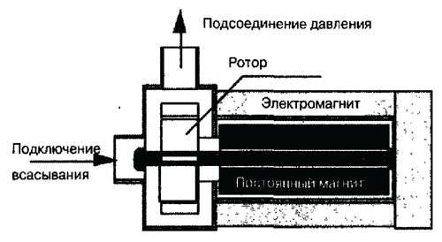 Сечение центробежного насоса с электромагнитным приводом