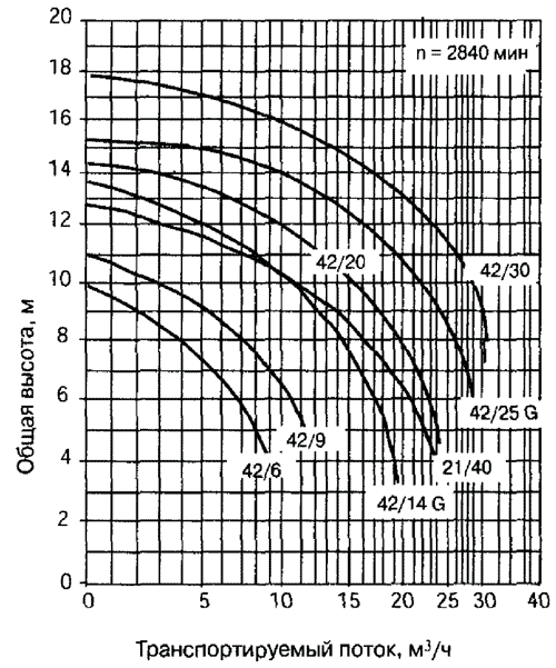 Диаграмма производительности различных центробежных насосов из пластмассы