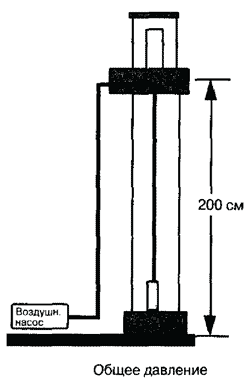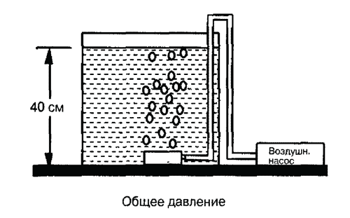 Если воздух выходит из насоса, он должен прежде всего преодолеть сопротивление в шланге, сопротивление мокрого аэратора и иметь еще достаточное давление для того, чтобы пузыри преодолели сопротивление воды. В нашем примере высота водного столба составляет 40 см. Как было показано в главе о получении пузырьков, сопротивление аэратора значительно.