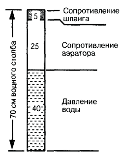 Воздушный насос должен перекрывать не только давление столба воды, но и сопротивление аэратора и шланга |