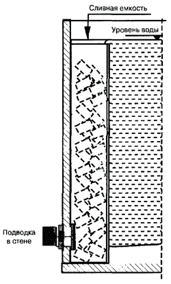 Сливную емкость, заполненную грубым фильтровальным материалом, можно использовать в качестве предварительного фильтра |