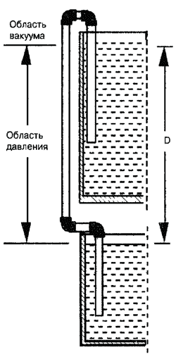 На самом высоком месте сифона возникает воздушный пузырь, который можно удалить только с помощью постоянного откачивания |
