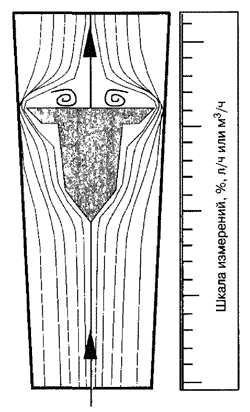 Если увеличивается поток воды, конус снова поднимается на необходимую высоту до стабилизации гидравлического сопротивления. Конус имеет визирную метку, с помощью которой можно считывать показания по расходу воды. Расходомеры с плавающим телом изготавливают из стекла или пластмассы, так что они могут применяться в установках с пресной и морской водой. Подобные конструкции имеются для воздуха и других газов. Для большого расхода воды применяется расходомер с магнитной или индуктивной регистрацией результатов измерения.