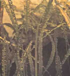 Очень красива и обнаруженная в 1978 году на Калимантане и только в 1985 году научно определенная С. hudoroi – она похожа на С. aponogetifolia. К этой же группе относятся виды с более короткими, но тоже линейными листьями – криптокорина спиральная (С. spiralis) и С. albida. Они имеют более плотные и укороченные, хотя тоже узкие листья и довольно легко переходят из одной среды в другую. Порой эти криптокорины располагаются и на суше, и в воде одновременно, так что заросли не прерываются на границе двух сред. С. albida на берегу может быть и зеленой, и коричневой, иногда обе формы растут вперемежку. В воде она чаще всего бывает яркой, красно-коричневой, с мелкими вишневыми штрихами на листьях.