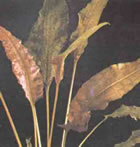 Все виды криптокорин в зависимости от условий существования разделяются на группы. Длиннолистные, как правило, растут на течении, таковы С. retrospiralis, С. crispatula var. balansae, C. aponogetifolia (ее листья похожи на листья апоногетонов Бернье и Боивиньи). Последняя вызывает много споров, так как в природных условиях (на Филиппинах) встречается ее наземная форма – С. usteriana. Мне с трудом удалось заставить эту криптокорину расти без воды во влажной теплице. О трудности перевода ее в наземную форму говорил мне и растениевод из Дессау Г.Барт. А вот В.Шелейковский в Главном ботаническом саду страны успешно справился с этой задачей.
