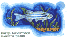 При отраженном свете белополосый данио казался серо-зеленым с темной спинкой, основание хвостового плавника было темно-оливковое, а конец – золотистый с зеленым отливом. Вдоль всего тела, действительно, шла полоса, но она была совсем не белая, а сине-фиолетовая. При верхнем же свете корпус казался розовато-голубым с фиолетовым отливом, а полоса сверкала кирпично-красным. «Где же белая полоса?» – недоумевали специалисты.