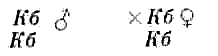 У каждого гибридного меченосца (Кб) могут быть две гаметы, одна К и другая б. При скрещивании получается следующая картина: