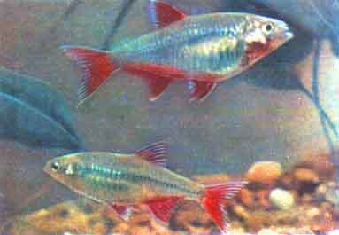 Пульхрипиннис (Hyphessobrycon pulchripinnis E. Ahl.). Пульхрипиннисы обитают в водах Бразилии. В Европу они впервые завезены в 1937 г., в Советский Союз — в 1956 г. Пульхрипиннисы достигают 4 см длины.