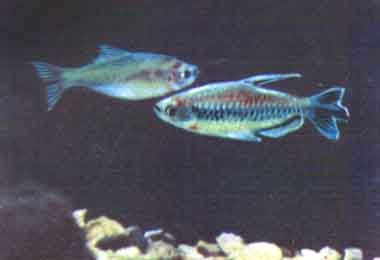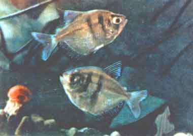 Тернеция (Gymnocorimbus ternetzi Boulenger). Тернеции широко распространены в озерах и медленно текущих реках Бразилии, Боливии и Парагвая. В Европу завезены впервые в 1935 г., в СССР — в 1946 г. Рыбы достигают 6 см длины, обычно 3—4 см. Самцы мельче самок.