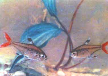 Гетерорабдус (Hyphessobrycon heterorhabdus Ulrey). Гетерорабдусы водятся в нижнем течении Амазонки и в р. Токантинс. В Европу они впервые завезены в 1910 г., к нам — в 1957 г. Рыбы достигают 9 см длины, а в аквариумах обычно мельче.