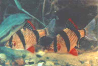 Пунтиус (барбус) суматранский (Puntius tetrazona tetrazona Beecker). Суматранский пунтиус (барбус) встречается в водах островов Суматра и Калимантан. В Европу он завезен в 1935 г., в СССР — в 1947 г. Рыбы достигают 7 см длины.