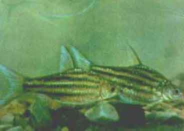 Пунтиус (барбус) полосатый (Puntius fasciatus Bleeker). Ранее эти рыбы были известны под названием Barbus lineatus. Полосатые барбусы распространены на островах Калимантан (Борнео) и Суматра, а также на Малаккском полуострове. В Европу они впервые завезены в 1934—1935 гг., в СССР — в 1954 г. Рыбы достигают 12 см длины, обычно 7—9 см.
