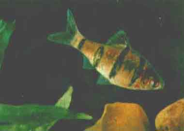 Пунтиус (барбус) пятиполосый (Puntius pentazona Fowler). Пятиполосые барбусы водятся на островах Калимантан, Суматра, Сингапур и на Малаккском полуострове. В Европу они впервые завезены в 1911 г., в СССР — в 1961 г. и вскоре разведены. Рыбы достигают 5 см длины.