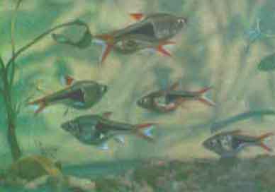 Кардиналов можно разводить и по-другому. Для этого производителей содержат 8—10 дней раздельно, а затем помещают в нерестилище. Каждая самка выметывает по 20— 30 икринок. Производителей рассаживают на тот же срок, а в нерестилище выкармливают одновозрастных мальков.