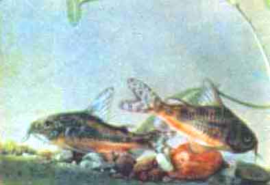 Калихт (Callichthys callichthys). Родина этой рыбы — воды восточной Бразилии. В Европу они впервые завезены в 1897 г., у нас впервые разведены в цементном бассейне в оранжерее киевским аквариумистом Л. А. Шелюжко в 1910 г., вторично привезены к нам в 1963 г.