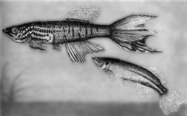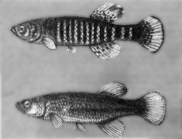 Нотобранхиус Гюнтера (Nothobranchius guentheri Pfeffer). Рыбы водятся в пресных и солоноватых водах Восточной Африки. Впервые в Европу завезены в 1913 г., вторично — в 1958 г., в СССР — в 1960 г. Самцы достигают 8,5см длины, самки — 7 см.