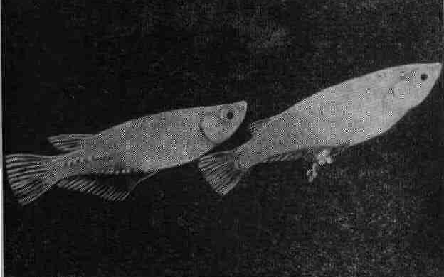 Оризиас (Oryzias latipes Schlegel). Эти рыбы распространены в водоемах Японии (рис. 95). В Европу впервые завезены в 1897 г., в СССР — в 1960 г. Рыбы достигают 4—5 см длины.