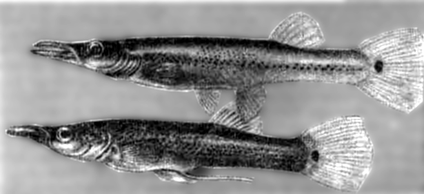 Белонесокс (Belonesox belizanus Kner). Белонесоксы распространены в водах Центральной Америки (рис. 96). Живут они в мелких стоячих или медленно текущих водоемах с условиями, неблагоприятными для существования многих других видов рыб (даже в солоноватой воде и заболоченных лужах). В Европу завезены впервые в 1909 г., у нас они были до 1941 г., но в настоящее время их нет. Самцы достигают 10—12 см длины, самки — 20 см.