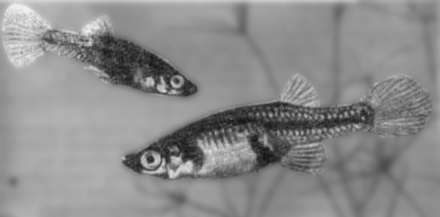 Пецилия (Xiphophorus (Platypoecilus) maculatus Gunther). Пецилии распространены в водах восточной Мексики и Гватемалы. Самцы достигают 4 см длины, самки — 6 см. В Европе они появились в 1907 г., вскоре распространились и I) России.