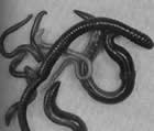 Дождевые черви. Этот прекрасный корм для рыб можно добыть всегда, кроме зимних месяцев, а зимой разводить методом, описанным для энхитрей, но в более вместительном ящике. Конечно, целиком скармливать дождевых червей можно только очень крупным рыбам, для большинства же они пригодны только в рубленом виде. Для этого можно использовать острые ножницы, но если вам противно держать в руках извивающегося червя, попробуйте поступить следующим образом: положите несколько червей в закрывающийся пластиковый лоток и поставьте в морозильник. Перед кормлением достаньте нужное их количество и нарежьте бритвой на кусочки на деревянной доске. При необходимости культуру дождевых червей надо возобновлять.
