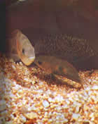 4) самка мечет икру в углубление, и родители охраняют ее. Так поступают виды Tilapia, некоторые американские солнечные рыбы и другие цихлиды, например Geophagus;