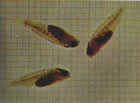 Через несколько дней, обычно в пределах недели, вы обнаружите, что ваши питомцы, питавшиеся инфузориями, достигли размера, при котором им явно требуется более крупный корм. В этот период им нужно давать микрочервей или свежевылупившихся науплий артемии, а еще лучше — босмину (если вы сможете ее достать) или мелких живых дафний. Преимущество этого корма в том, что он остается живым. Избегайте слишком обильного кормления дафниями, иначе они начнут конкурировать с мальками за кислород, и не волнуйтесь, что некоторых особо крупных дафний рыбки не могут проглотить—такие толстяки регулярно дают многочисленное потомство, которое также пойдет впрок.