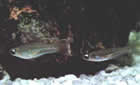 Aphyosemion cognatum (афиосемион когнатум, красноточечный афиосемион). Небольшая (около 5см длиной; и очень эффектная рыбка, встречающаяся в Заире. Самец красноватый с голубым отливом и голубыми жаберными крышками. Его тело покрыто карминовыми крапинками, переходящими на спинной, анальный и хвостовой плавники, которые украшены пурпуровой каймой. Окраска самки несколько светлее, она также усыпана карминовыми крапинками, однако на плавниках нет окаймления.