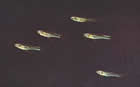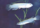 Aplocheilus lineatus (аплохейлус линеатус, полосатая светлоглазка). Родина – Индия и Шри-Ланка. Достигает длины 8,75см. Это так называемый Panchax lineatus, популярный в США и часто поступающий в продажу. Окраска самца светло-пурпуровая, на теле горизонтальные ряды желтых крапинок и россыпь красных крапинок, переходящих на плавники. Самку легко отличить по зеленой окраске, темной зоне у основания спинного плавника и группе вертикальных полос на боках Спинной и анальный плавники, а также нижняя и верхняя лопасти хвостового у самца и самки имеют красное окаймление.