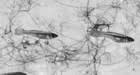 Выклюнувшихся личинок нужно тут же отсадить, поскольку им сразу нужен корм. И в этом случае можно использовать пипетку; немного попрактиковавшись, вы будете с легкостью "отсасывать" вертких малышей. Подготовьте для них большой выростной аквариум емкостью от нескольких литров до 8–12 л с водой той же температуры и качества, как та, в которой они выклюнулись. Кормить личинок инфузориями следует не слишком долго, своими большими ртами они способны заглатывать науплий артемии и мелких дафний. Рост мальков идет быстро.