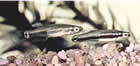 Aplocheilichthys flavipinnis (желтоплавничковый аплохейлихтис, желтоплавничковый панхакс). Родина – Нигерия. Эта маленькая рыбка длиной не более 3,75см, как и другие виды рода, выглядит особенно красиво при соответствующем оформлении аквариума – не обязательно большого, с темной задней стенкой, множеством растений и светом, падающим сверху. Она обитает в прибрежных регионах, где происходит инфильтрация морской воды, поэтому добавление в аквариум неиодированной соли (чайная ложка на 4 л) дает хорошие результаты. В природных условиях аплохейлихтис формирует стайки и в небольшой группе чувствует себя лучше, чем парой в отдельном аквариуме. Легко нерестится в слегка кислой воде (рН 6,8) с жесткостью не выше 6° при температуре 24 °С.