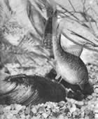 Rhodeus sericeus (обыкновенный горчак). Широко распространен в Центральной и Южной Европе, достигает длины 7,5см. Как многие обитатели регионов умеренного климата, горчаки необыкновенно преображаются в нерестовый период, хотя в остальное время это обычные серебристые рыбки с нечетко выраженной горизонтальной полосой в задней части тела. Однако во время нереста эта полоса становится ярко-голубой, брюшко и анальный плавник самца сильно краснеют, наружная половина хвостового и спинной плавник приобретают желтую окраску, причем на спинном плавнике появляются зеленые пятнышки. На теле самки тоже появляется горизонтальная полоса, однако все оно приобретает нежно-розовую окраску.