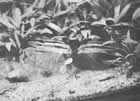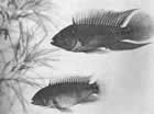 В эту подгруппу входят роды Apistogramma, Nannacara и Pelvicachromis, так называемые карликовые цихлиды. Благодаря небольшим размерам и такому же типу нереста, как у более крупных цихлид, некоторые из этих рыб особенно привлекают аквариумистов, которые не могут позволить себе завести других цихлид просто из-за нехватки места. Карлики прекрасно нерестятся в аквариуме емкостью 20 л, более того, нам удавалось разводить рыб типа наннакар даже в 8-литровом аквариуме. Предпочитая прятать икринки, эти цихлиды не имеют малоприятной привычки выкапывать растения, присущей большинству их крупных сородичей. Для нереста им нужна температура 25,5–26,5 °С (за исключением каких-то особых случаев), но в преднерестовый период ее лучше всего немного снизить, например до 24 °С. Хорошо озелените нерестовик, это даст рыбкам ощущение безопасности, положите несколько камней и маленький цветочный горшок, выбрав для него наиболее темный уголок. Поверните горшок горловиной от света, и, возможно, цихлиды облюбуют для нереста именно это место. Под горшком самец заранее деловито выкапывает ямку, выплевывая наружу все мелкие кусочки гравия, пока ему не удастся навести полный порядок. Затем он выбирает себе самку, и горе ей, если она еще не готова к нересту! Поэтому, заметив подготовку самца к нересту, проверьте состояние самки, при необходимости перенесите ее в другой аквариум и как следует откармливайте, пока у нее не округлится брюшко, иначе бедняге крепко достанется от партнера. Созревшая самка вскоре позволяет подогнать себя к нерестилищу и мечет кучкой икринки, которые самец тут же оплодотворяет. Но как только нерест закончится, с самкой происходят удивительные перемены: из скромного, робкого существа она превращается в настоящую тигрицу, гоняя и кусая почти вдвое более крупного супруга, пока тот не обратится в бегство. Оставаясь в это время в обществе супруги, он очень многим рискует. Предоставленная сама себе самка обычно трогательно заботится об икре и личинках, но иногда, особенно в очень неспокойной обстановке, она вдруг приходит к мысли, что это лакомое блюдо, и начинает поедать их. Следовательно, и в этом случае вы можете получить нормальный приплод, только искусственно выращивая молодь. Как и при разведении крупных цихлид, икру удаляют из нерестовика (либо отсаживают родителей) и подключают постоянный слабый ток воздуха, проходящий рядом с икринками, но не затрагивающий их. Через 4–5 дней на дне появляются беспомощно извивающиеся личинки. Еще три дня уходит на опустошение ими желточных мешков, далее виды Apistogramma и Nannacara начинают питаться инфузориями или, в худшем случае, порошковым кормом, а достаточно крупных личинок Pelvicachromis можно сразу перевести на артемию или мелких дафний (для двух других групп такой корм пригоден только после нескольких дней инфузорного рациона). Когда личинки начинают расти, все дальнейшее не представляет труда; в шестимесячном возрасте рыбки начинают подыскивать себе пары для создания собственных семей.